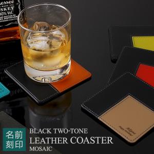 1000円 名入れ CLブラックツートンレザーコースター(モザイク) おしゃれ 還暦 結婚 誕生日 プレゼント プチギフト 実用的