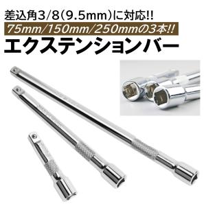エクステンションバー 3本組 3/8 9.5mm 75mm 150mm 250mm 差込角 9.5mm 延長棒 ラチェット 延長