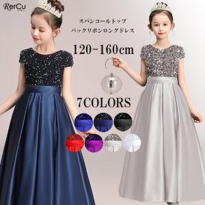 子どもドレス 子供 ロングドレス 高級ドレス スパンコール 上品 フォーマル 120 130 140 150 160 フラワーガール エレガント ステージ 写真映え レッド ネイビー