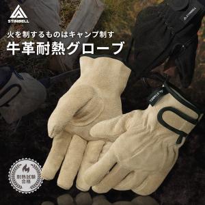 耐熱グローブ 耐熱 耐火 手袋 国内耐熱試験合格 焚き火 キャンプ グローブ やわらかい 革手袋 牛革 作業用 カラビナセット STINBELL