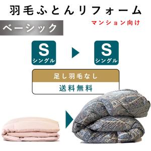 羽毛布団 打ち直し リフォーム シングル→シングル 補充羽毛なし(ベーシック) 綿100% シングル仕上 羽毛ふとん クリーニング 羽布団 布団打ち直し 買い替え 爆買