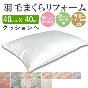 羽毛枕 クッション リフォーム 40×40cm 綿100% 打ち直し 快眠 安眠 羽毛 枕 国内仕上げ 日本製 マクラ ピロー ダウン フェザー まくら 肩こり クリーニング
