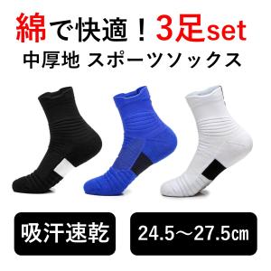 (3足セット) スポーツ ソックス 中厚地 靴下 メンズ 綿 吸汗速乾 バスケットボール テニス ランニング ゴルフ アウトドア 登山 作業 用 24.5〜27.5cm y467