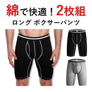 (2枚セット) ロング ボクサーパンツ メンズ 綿 コットン ボクサーブリーフ 前開き ショーツ インナー 下着 無地 y469
