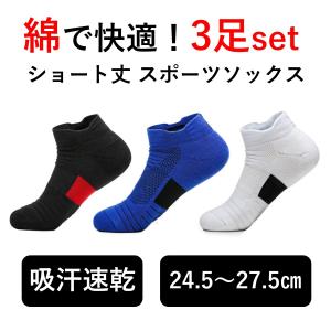 3足セット ショート ソックス スニーカー 靴下 メンズ 綿 吸汗速乾 中厚地 くるぶし スポーツ バスケットボール ゴルフ ランニング 用 24.5〜28.0cm y474