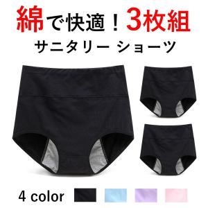 (3枚セット) サニタリーショーツ 防水布付き ショーツ 生理用 綿 コットン パンツ 夜用 通気性 伸縮性 レディース 女性用 y501