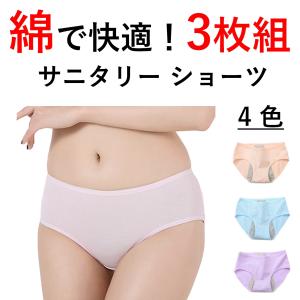 (3枚セット) サニタリーショーツ 防水布付き ショーツ 生理用 綿 コットン パンツ 夜用 通気性 伸縮性 レディース 女性用 y493