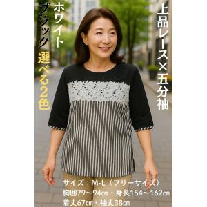 五分袖ブラウス レディース レース ストライプ 花柄 M-Lサイズ フリーサイズ ゆったり おしゃれ 上品 着やすい 30代 40代 50代 60代 70代 ミセス 売り尽くし