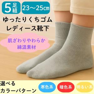 まとめ買い 婦人靴下 5足セット ゆったり くちゴム 綿混 ショート丈 23-25cm 冷え対策 快適 はきやすい レディース シニア ミセス 入院 介護 爆買WEEK