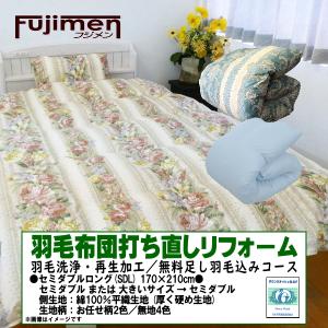 羽毛布団 打ち直しリフォーム セミダブル(170×210cm) サイズ変更可能 綿100%硬め生地/羽毛洗浄再生込み料金・羽毛洗浄クリーニング