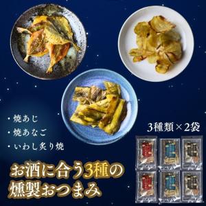 燻製 海鮮 珍味 おつまみセット【 3種×2袋 】 6袋セット 詰め合わせ 燻製 焼あじ 焼あなご 燻製 いわしの炙り焼 ギフトにも最適 おやつ 酒の肴 宅飲み 父の日