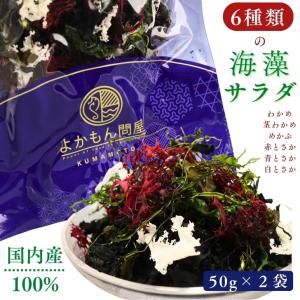 6種類 の 国内産 海藻 サラダ 100g 【 お得 な 50g × 2袋 セット 】乾燥 ミックス 【 送料無料 】 国産 わかめ 茎わかめ めかぶ 赤とさか 青とさか 白とさか