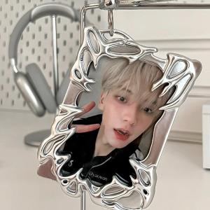トレカ ケース メタリック シルバー 液状 おしゃれ 韓国 推し活 可愛い アイドル フォト チェキ キーホルダー 硬化 メッキ フレーム ペンミ