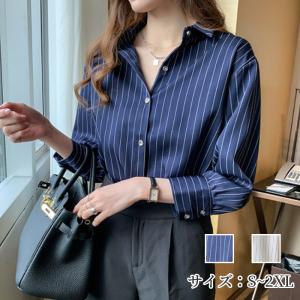 シャツ レディース ブラウス ストライプ柄 長袖 トップス オフィス 通勤 通悪 ビジネス