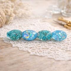 青色レジンバレッタ ラメ入り