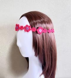 ハンドメイド バブーシュカ お子様用 ヘアアクセ 綿100% かぎ針編み