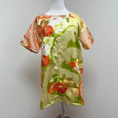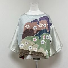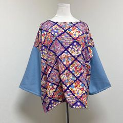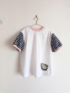 リメイク パッチワーク風 ゆったり袖 チェック ギャザー Tシャツ カットソー