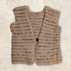 ハンドメイド ピンクのケーブル編み ニットベスト