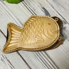 あんこがはみ出した たい焼き レザー 小物入れ ポーチ ハンドメイド