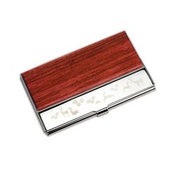 【新品】 [Spirit316] 名刺入れ SPCH13 天然木張り 鏡面加工 メイクミラー シルバーケース スリムデザイン 和風刻印 (鹿紅葉 パープルブラウン) 1