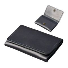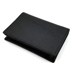 黒色柔らかい牛革製被せ型に黒漆印伝皮革を貼った名刺入れ 未使用品 レトロ