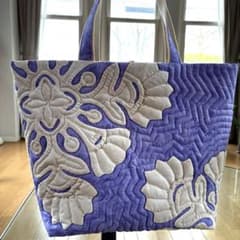 ♡ねことちょうちょ柄♡パープル系Mサイズトートバッグ ハンドメイド
