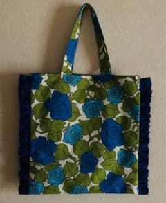マスタードと青い鳥と薔薇 トートバッグ 大 ハンドメイド