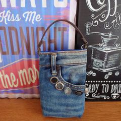 112★USEDダメージデニムリメイク★スマホケース★メガネケース★サングラスケース★アンティークボタン飾り★マルチポーチ★