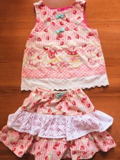 女の子セットアップノースリーブ&スカートハンドメイド120cmいちごケーキ