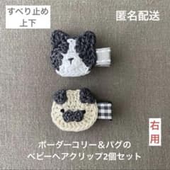 【匿名配送】犬のベビーヘアクリップ2個セット ヘアピン ボーダーコリー パグ
