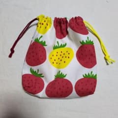 大きなイチゴ柄の巾着袋