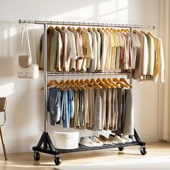 【人気商品】ダブル パイプハンガー シルバー 幅100.5×奥行41.5×高さ117~183.5cm 洋服収納 大容量 服掛け 全体耐荷重120kg 衣類 上下2段 衣装 頑丈 業務用 ハンガーラック キャスター付き ドウシシャ LIH2-100CR