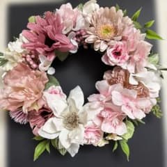 春を運ぶピンクのローズリースフラワーリース玄関リースLサイズギフト