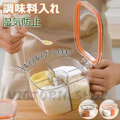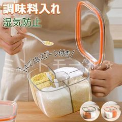 新しい未使用 調味料ポット 調味料入れ 砂糖入れ 塩入れ 湿気防止 スプーン付き(四つ) パッ