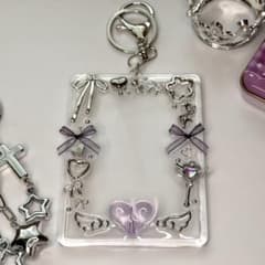 トレカキーホルダーデコ トレカケース レジン (紫 リボン)