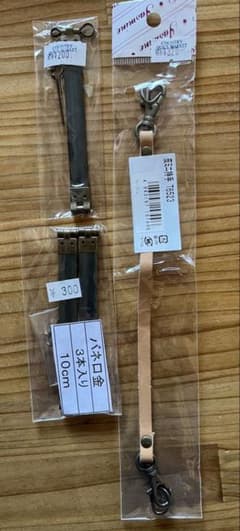 ポーチ用皮製ミニ持ち手18cm バネ口金10cm 3本