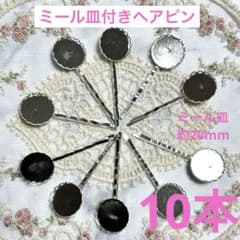 シルバー金属製フリルエッジ ミール皿付きヘアピン10個セットミール皿 約20mm