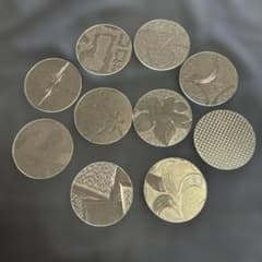 昭和レトロ 型板ガラス 丸型10cm 10枚セット ミックス柄 古ガラス