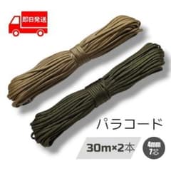 パラコード ガイロープ 30m×2本 4㍉ 7芯 ハンドメイド【緑・カーキ】