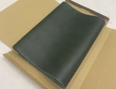 オーストレッグ本革!1枚姿端切れ!ツヤエメラルド色!すいてあります!送料無料!