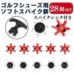 ゴルフ スパイク鋲 ゴルフシューズ 28個 ソフト 靴 交換 赤 レンチ付き
