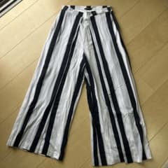 ZARA BASIC ストライプ ワイドパンツ ガウチョ リボン XS