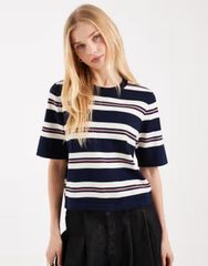 ヴェロモーダ レディース トップス Tシャツ ニット Vero Moda boxy knit short sleeve tshirt cream and rose stripes Navy blazer stripe ネイビー