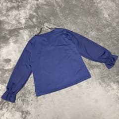 クラシカルエルフ ラウンドネック ミニプリーツ袖メローリブブラウス 長袖 黒