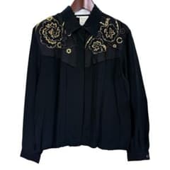 ミッシェルクラン【38】シャツ ブラウス ビジュー ロング丈 薄ピンク イトキン