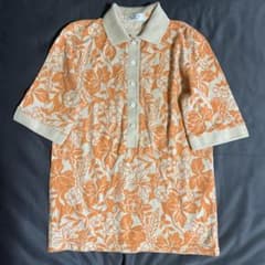 スタイリッシュウーマン ゆったり ポロシャツ 半袖 総柄 白 黒 体型カバー