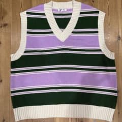 コルザ ニットベスト チェック柄 Vネック ゆったり グリーン M