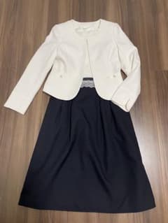 セレモニースーツ 7号 白ジャケットとネイビーワンピース2点セット