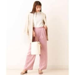 a.v.v カジュアルパンツ マットサテンワイドパンツ ピンク 光沢 XL
