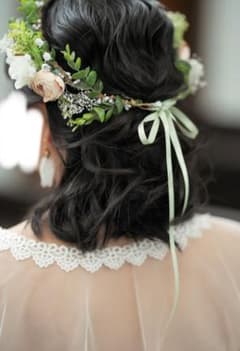 ウェディング ヘッドドレス 花と葉の装飾